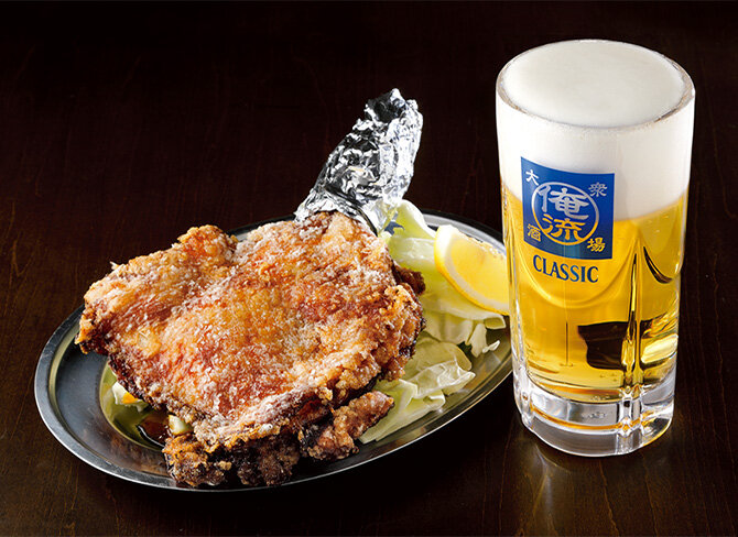札幌の大衆酒場ブームの火付け役となった『俺流』の2号店。ザンギとクラシックの名相棒を柱とする親しみやすいメニューの中で、異彩を放つのが山賊ザンギ。長野県育ちの店長が地元の名物である鶏の山賊焼きを北海道風にアレンジした一品だ。350gの骨付きもも肉にほんのりと甘い長野県の醤油を使い、女性にも食べやすいあっさり味と、男性も満足するパンチ感を両立。気軽に通える価格設定もうれしい。