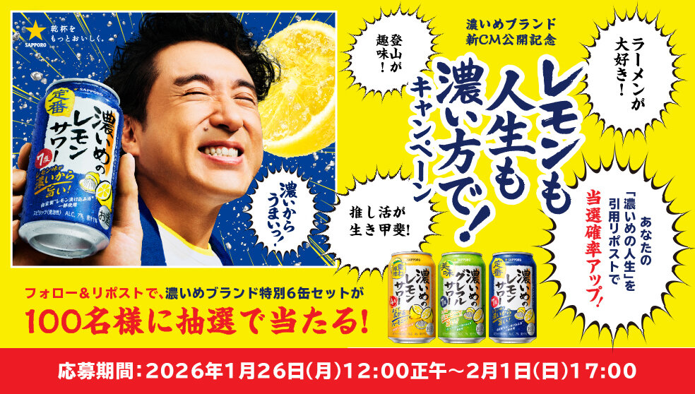 濃いめブランド新CM公開記念「レモンも人生も濃い方で!」キャンペーン