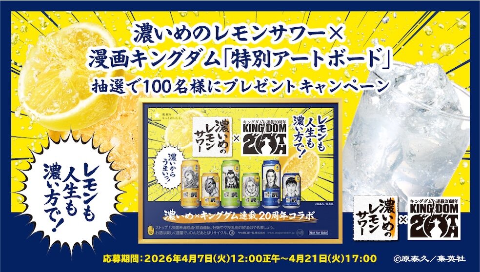 濃いめのレモンサワー×漫画『キングダム』!コラボキャンペーン第2弾! 抽選で合計100名様に「特別アートボード」が当たる!