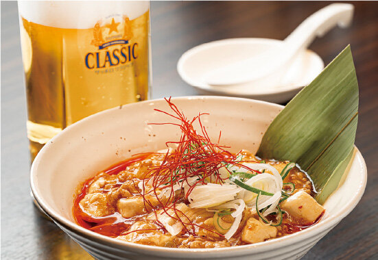 海の幸が自慢の海鮮居酒屋の系列ながら、店独自のメニューが充実しているのがここ。中でもイチオシは、2種類の唐辛子をブレンドした自家製ラー油と、芳しいサンショウ油で作る本格的な「麻婆豆腐」。ホテルの中華シェフの経歴を持つ店長が腕を振るう逸品だ。辛さは中辛と激辛から選べる。