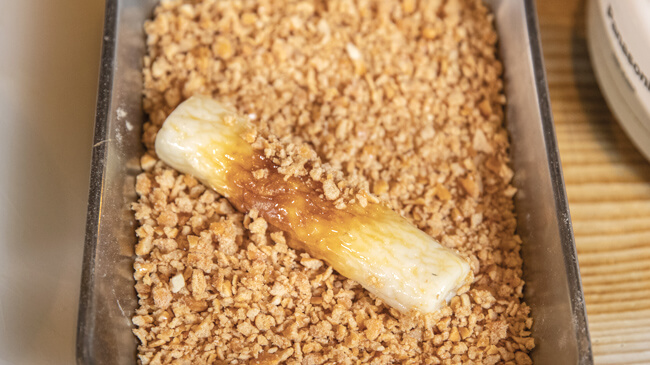 柿の種を砕いて揚げ衣にするから、香ばしくてカリカリ!