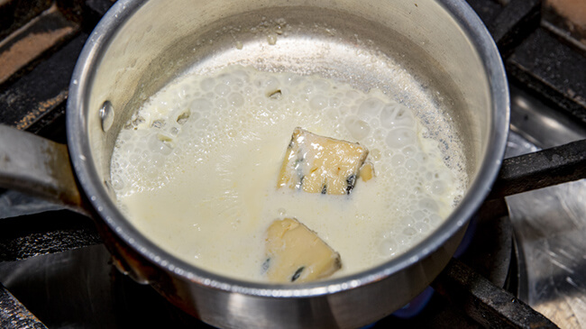 ブルーチーズソースは、煮詰め過ぎないのがポイント!チーズはカマンベールなどでも美味しくできます。ココットに入れてディップにするのもおすすめ!