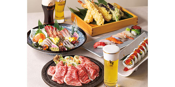 多品種の生ビールと本格和食が楽しめる「和食ビヤホール 枡々益」では、サッポロライオン伝統の抽出方法である“一度注ぎ”で提供する生ビールが堪能でき、料理は和食の定番である寿司や刺身、天ぷらのほか、ビヤホールの定番料理を和風にアレンジした和の肴を揃える。夜の一献はもちろん、近隣で働くオフィスワーカーに利用してもらえるランチタイムの御膳メニューから、接待にも利用できる宴会コースまで様々なシーンで利用できる。