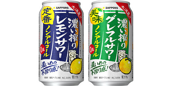 サッポロビールは、「濃くて 旨くて 大満足!」をキーワードに展開している「サッポロ 濃い搾りレモンサワー ノンアルコール」「サッポロ 濃い搾りグレフルサワー ノンアルコール」 ( 各 350ml 缶 ) の中味を 1 月製造分より順次リニューアルする。