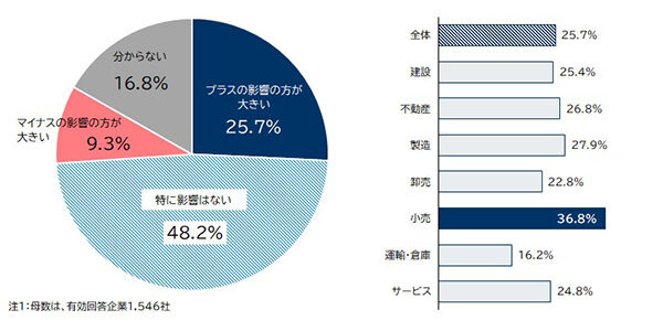 帝国データバンクは、消費税の減税が実施された場合、直接・関節問わず自社にとってどのような影響があるかについて、 2 月 5 日~ 2 月 9 日にインターネットによるアンケート調査を実施し、 1,546 社から有効回答を得た。