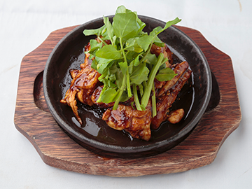 経営母体の㈱サムライフードカンパニーの高城直弥社長の出身地、滋賀県の郷土料理である「とんちゃん焼き」をアレンジした「地鶏のかしわ焼き」880円を主力商品にワインバルの新しいスタイルを打ち出しているのが東京・神泉の「かしわビストロ バンバン」である。36品を揃えるフードメニューは「近江黒鶏のかしわ焼き」「地鶏のおつまみ」「とりあえずのおつまみ」など8カテゴリーを用意。それぞれで高原価率の目玉商品をオンメニューすることでメニュー全体のクオリティに対するイメージアップを図っている。グランドメニューの大半を550~980円の価格に集約することで気軽さを打ち出す一方、おすすめメニューを「外食経験豊富な人に調理技術の高さをアピールする場」(高城社長)と位置づけ1000円を超えるメニューも投入する。主力商品の肉料理の他に、系列店「リゾットカレースタンダード」の看板商品である「リゾットカレー」880円を締めのメニューとして提供。チーズリゾットとカレーを組み合わせ、ワインのアテにもなる商品だ。客単価は4500円で、アルコールの売上げ比率は50%を確保。17坪45席で月商800万円を売り上げる。