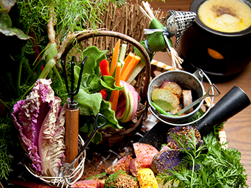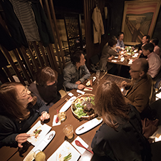 「生産者が自ら行商人となって店頭で食材を売る」という斬新なコンセプトを打ち出した宮城・仙台の「生産者直結 農家の行商人 畑のあぐり」。この店のヒットで業界の注目を集めた㈲カフェクリエイトは、地産食材を柱にした業態づくりを身上としている。その中で野菜に特化した客単価5000円の業態として開発したのが「グラスワインと折衷料理 土龍」だ。大きな籠に多彩な野菜を盛り込み、テーブル上に畑を再現した「名物・土龍自慢の野菜の遊園地! 厳選野菜の“バーニャカウダ”」1200円など遊び心溢れるプレゼンテーションが売り。蒸したニンジンをバターでソテーしてキャラメリゼし、生姜醤油のソースをかけた「名物、人参の丸ごとステーキ。キャラメル 生姜醤油ソース」550円など、素材のクオリティを生かしたユニークなメニューが揃う。アルコールの売上げ比率は40%を確保するが、そのうち5割強を量り売りのグラスワインが占めている。宮城・仙台のJR仙台駅から徒歩15分、商店街から1本入った通りの雑居ビル地下という立地ながら熱心な固定客を確保。28坪30席で月商500万円を売り上げている。