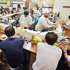 17坪のフロアにコの字型カウンター30席を配し、ターゲットである20代~40代の客層が大衆酒場らしい賑わいを創出している「大衆食堂スタンド そのだ」(大阪・谷町六丁目)。2016年5月にオープンした同店は、人通りの少ない商店街の外れに立地するが、11時~23時の通し営業で、客単価2200円、月商900万円を売り上げる人気店に成長している。約70品(150~1000円)をそろえるフードの中には、バルメニューやエスニック料理のエッセンスを取り入れたり、盛付けでインパクトを出すなどの手法で、大衆酒場の定番メニューを現代的にリモデルしているものも多い。アンチョビと煮卵を添えたポテトサラダ、ポテトサラダを詰めて揚げたちくわ天、ツーオーダーでスジ煮込みと豆腐を合わせてドカ盛りで提供する肉豆腐、豆腐によだれ鶏をのせてパクチーを山盛りにした冷奴などがその一例だ。串焼きも、クミンなどのスパイスに漬け込んだラム肉を焼いた「ラムの串焼き」を置くなどして個性をアピールしている。また、鮮魚料理はいっさい置いていないのも特徴。これによってオペレーションの負荷を下げて属人性を配し、食材のロス削減にもつなげている。