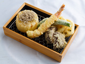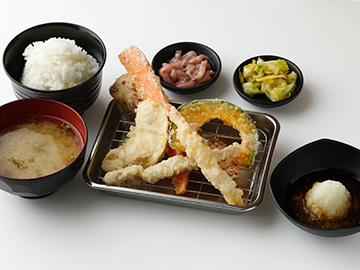 2016年1月にオープンした東京・神田の「天ぷら さいとう」は、昼は天ぷら定食、夜は天ぷら酒場という二毛作の業態づくりが特徴。経営母体のHandS㈱は、「揚げものは生地や揚げ油の配合、仕込みや調理方法などをマニュアル化しておければ料理人でなくても安定した品質の商品が提供できる」との考えから、この業態の開発に着手した。昼は「海鮮定食」950円や「肉天定食」850円など定食7品を680~1100円の価格レンジでそろえる。いずれの定食も5~7種類の天ダネを揚げたてで提供するが、その提供方法がユニークだ。まず野菜天などの“サブの天ぷら”を皿盛りで提供し、頃合いを見計らって魚介や肉を使った“メインの天ぷら”をサーブ。天ぷらを2回に分けて提供することで、お客は熱々の状態で味わうことができるのだ。また、サブの天ぷらはほとんどの定食で共通の内容とし、作業の効率化にもつなげている。一方、夜の天ぷらメニューは約30品。単品注文が主体で、サイドメニュー23品を含めて290円の均一価格で提供。アルコールも計25種類を30分500円の飲み放題とするなど、値ごろ感をアピール。客単価は昼920円、夜2800円で推移しており、12坪23席で月商300万円を記録している。