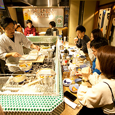 都市部で新規開業が増えている「天ぷら酒場」の流れをいち早くキャッチし、石川・金沢に2018年11月にオープンしたのが「串天ぷらスタンド ソル兵衛」だ。特徴的なのは、天ぷらを“串スタイル”で提供すること。串に刺すことで気軽さをわかりやすく表現するとともに、1品あたりの単価を抑えるというのがその狙いだ。天ぷらは30品をそろえ、「野菜天」は100円~、売れ筋の「海老天」は280円とリーズナブルな価格に設定。1日60本を売る「びのびチーズ天」4種類100円~や「トマトとチーズのカプレーゼ」230円、「漬けマグロの海苔包み」280円、「ポルチーニ茸とゴルゴンゾーラ」480円など創作性の高い天ぷらメニューも豊富で、また「鶏から天~プレーン~」3個300円はあえて串に刺さず、鶏の唐揚げを彷彿とさせる商品に仕立てるなど、柔軟な姿勢で商品開発に取り組んでいる。一方でサイドメニューは、クイック提供可能な「おつまみ」と、天ぷら丼や天そばなどの「〆めし」に絞り、天ぷら専門店というコンセプトを明確に打ち出すとともに、キッチンの調理作業を天ぷらに集中。20代~30代前半の若い世代を中心に集客し、客単価3200円で月商320万円を売り上げている。