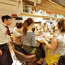 主客層は20代前半~30代。来店客の7割を女性が占めている。2軒目の利用が増える20時前後がピークで、平均滞席時間は60分。標準人員配置はキッチン2人、ホール1人で、人件費率は23%で推移。短時間のセルフ飲み放題に加え、ソースでアレンジするフレンチおでんや「白ワインで煮込むふれんちどて焼」など個性的なフードも見どころだ。