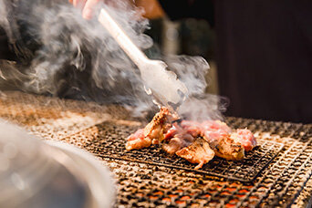 ジュウジュウと焼かれていく親鳥。炭火と鶏肉の香りが食欲をそそります。