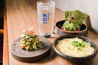創作料理と一緒に呑むお酒で悩みがちですが、そんな時の心強い味方が「氷彩」です。飲み方はいろいろありますが、プレーンサワーは和洋中どんな料理にも合うため迷わず注文。決して日野さんの氷彩愛に流されたわけではありません。