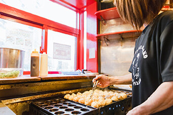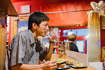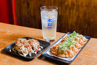 長い歴史が生んだ絶品たこ焼きと「氷彩」で乾杯!
