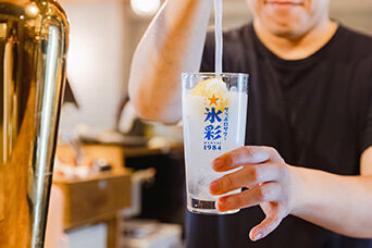 「『氷彩』はずっと前から出していて、人気のドリンクなので安心してお客さんに提供できます。クセがないから、餃子やたこ焼きみたいな濃い味とも、串カツのように揚げ物とも、すっと馴染むんです」(藤木さん)