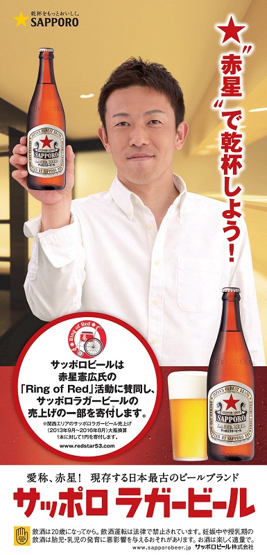 本キャンペーンは、2013年9月1日から2016年8月31日までの期間中、近畿2府4県で販売する「サッポロラガービール」の瓶ビール1本(注1)につき1円を「Ring of Red」に寄付し、車いす寄贈などに活用いただくものです。