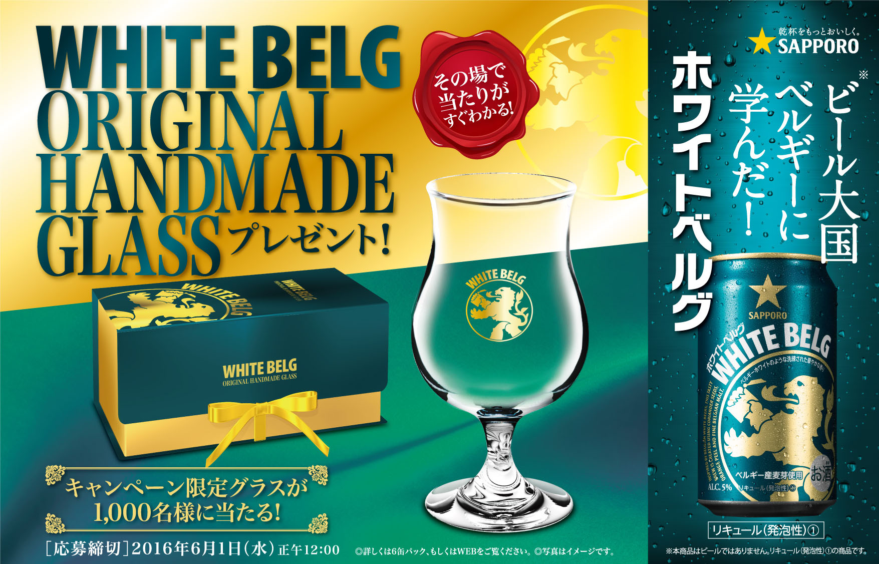 サッポロビール(株)は、本日よりサッポロ ホワイトベルグ公式ファンサイト「ホワイトベルグゼミ」(http://www.whitebelg.com)を開設すると共に、抽選で1‚000 名様に「ホワイトベルグ オリジナルハンドメイドグラスプレゼント キャンペーン」を実施します。