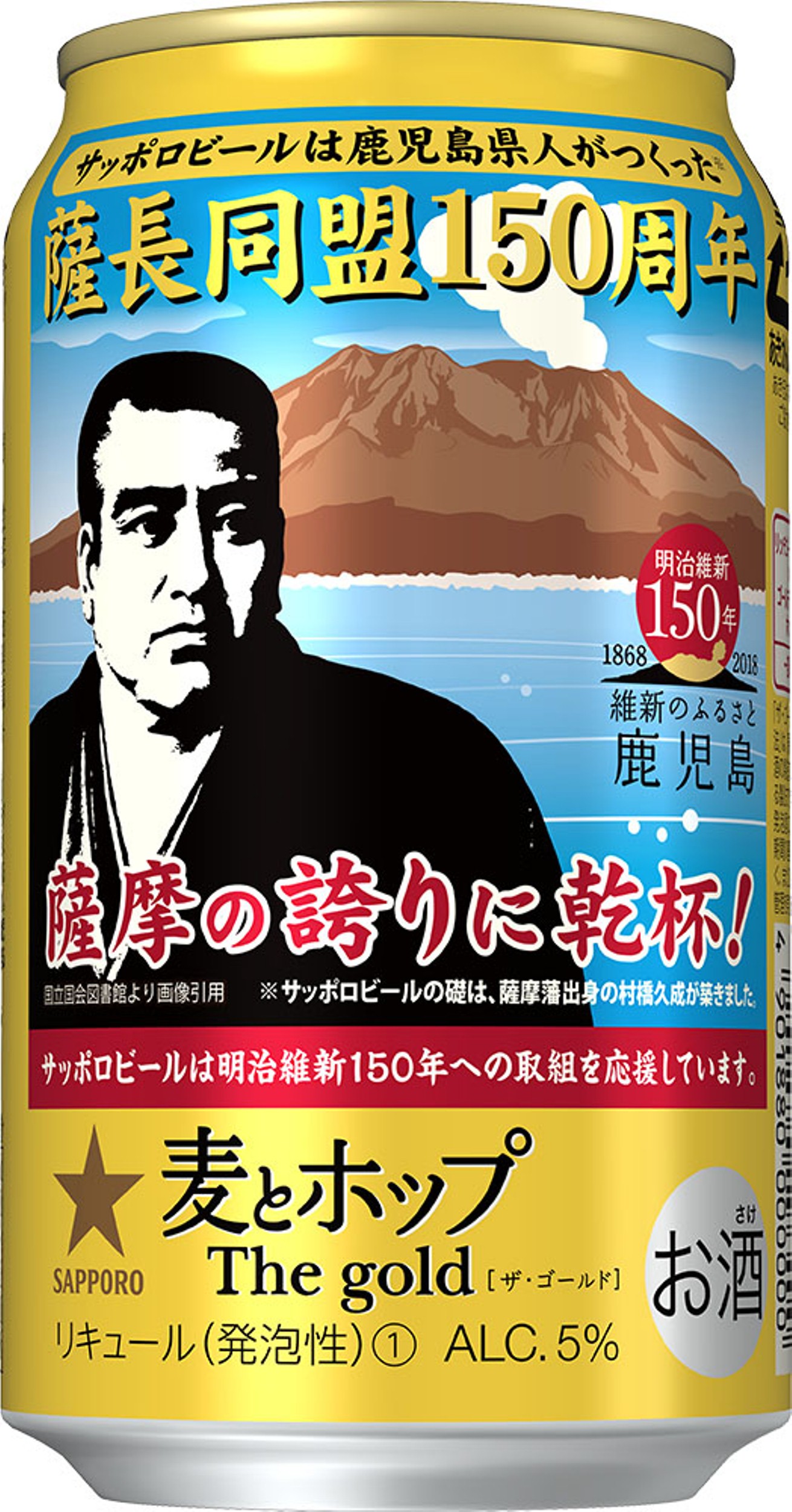 | 商品名 | サッポロ 麦とホップ The gold 「薩長同盟150周年記念缶」 |