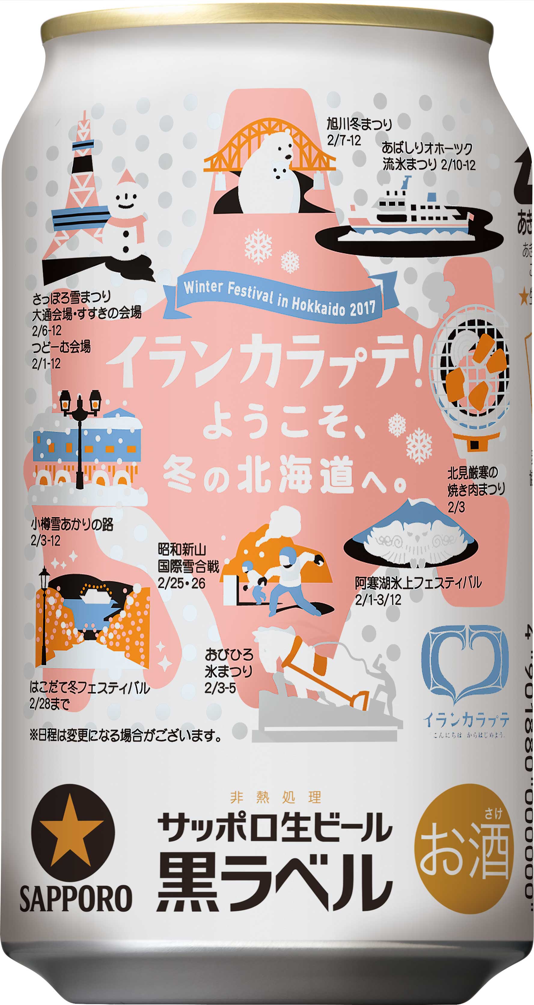 サッポロビール(株)は、北海道内の冬のお祭りを紹介する「サッポロ生ビール黒ラベル 北海道冬のまつり缶」と「サッポロクラシック 北海道冬のまつり缶」を2017年1月24日に北海道限定で発売します。「北海道冬のまつり缶」は来年で発売4年目となります。