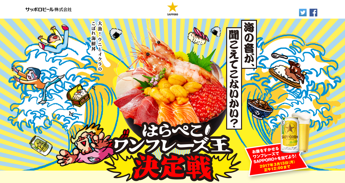 | キャンペーン名 | SAPPORO+(サッポロプラス)「はらぺこワンフレーズ王決定戦」キャンペーン |
