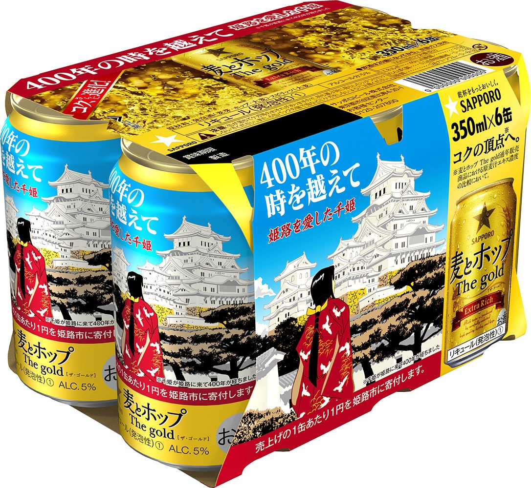 サッポロ 麦とホップ The gold「祝!400年 姫路を愛した千姫 デザイン缶」を新発売!