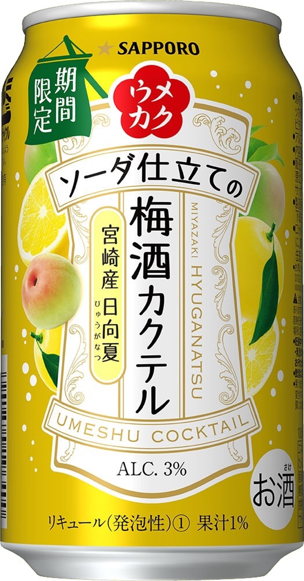 | 商品名 | サッポロ ウメカク ソーダ仕立ての梅酒カクテル 宮崎産 日向夏 |