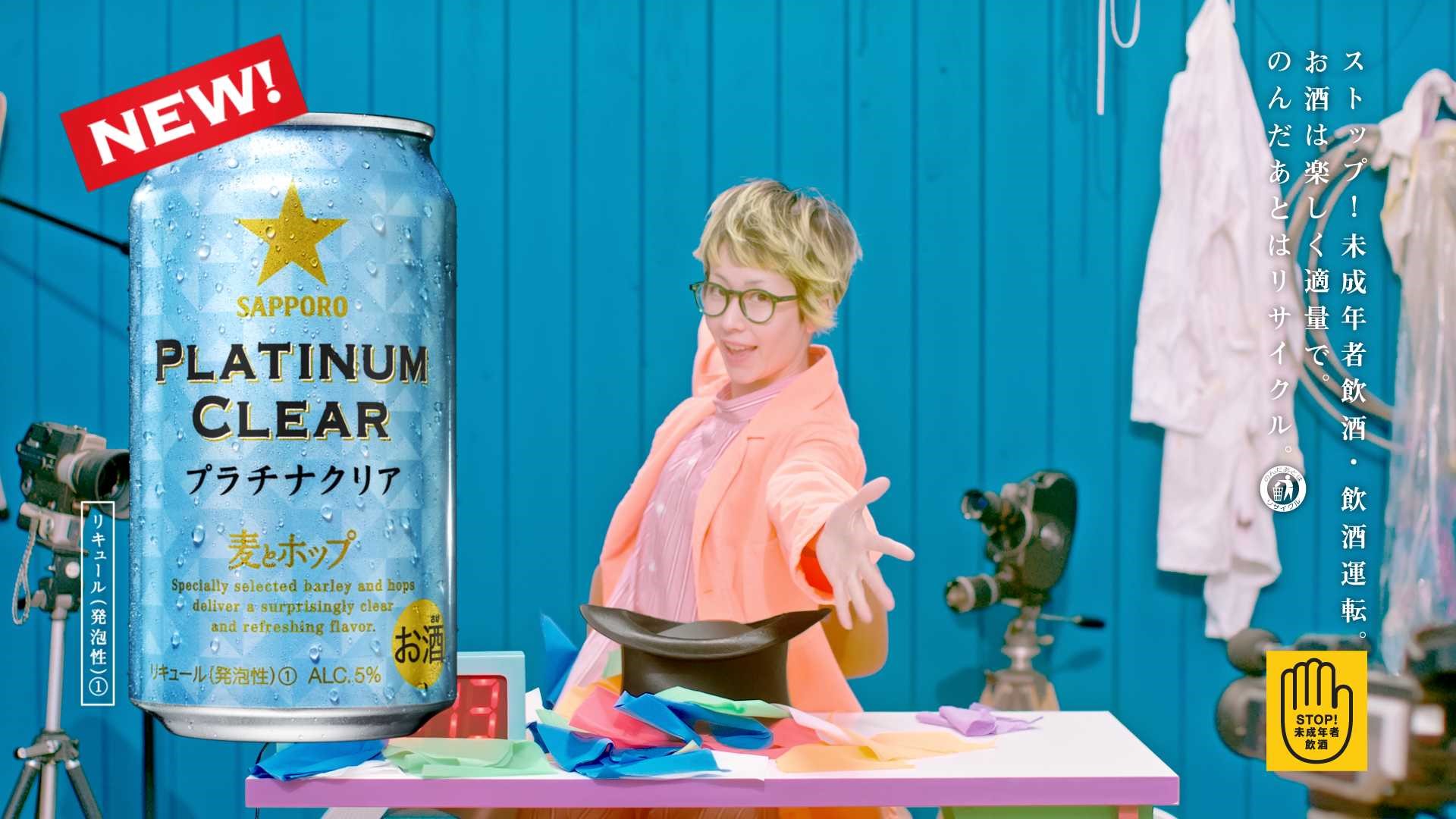 | 内容 | さらに驚くほどクリアで爽快な味わいにブラッシュアップし、パッケージデザインも大きくイメージチェンジした「サッポロ 麦とホッププラチナクリア」の今回のリニューアルを伝えるため、動画の企画コンセプトを「この爽快感、アリかも!?」に設定。キャラクターの木村カエラさんが、爽快な動画を目指して5つのスゴ技に本気で挑戦しています。気合いを入れて臨んだカエラさん。中には簡単にはできないスゴ技があったのにも関わらず、奇跡的に成功を収め、撮影現場全体が何度も歓声に沸き立ちました。 併せて、スゴ技に挑戦しうまくいかなくても、お茶目で可愛らしい、素の木村カエラさんをご覧いただけます。 本動画のカエラさんのイメージは「爽快なスゴ技」を日々模索する前衛アーティスト。美術で作り込んだ「爽快なイメージのアトリエ」を撮影スタジオに用意し、複数のカメラで収録。楽しみながらも真剣に取り組んだ「爽快なスゴ技」にチャレンジする木村カエラさんに是非ご注目ください。 |