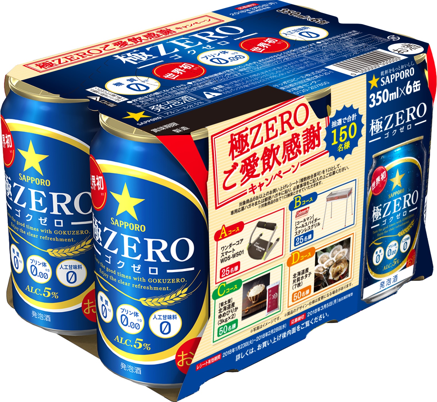 | 対象商品 | サッポロ 極ZERO 350ml缶、500ml缶 サッポロ 極ZERO 北海道オリジナルキャンペーン 6缶パック ※対象品が無くなり次第終了となります。 |
