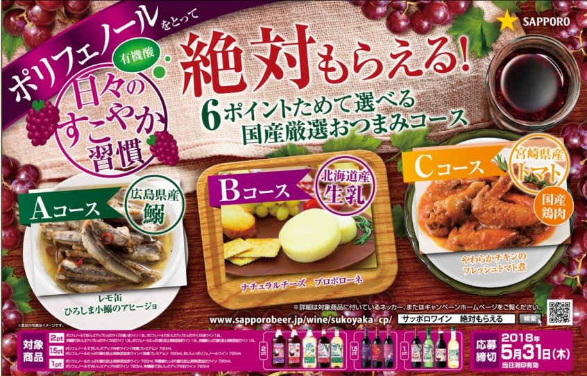 サッポロビール(株)は、国産デイリーワインと輸入ワイン[イエローテイル]を対象に、必ずもらえるマイレージ型のキャンペーンを実施します。