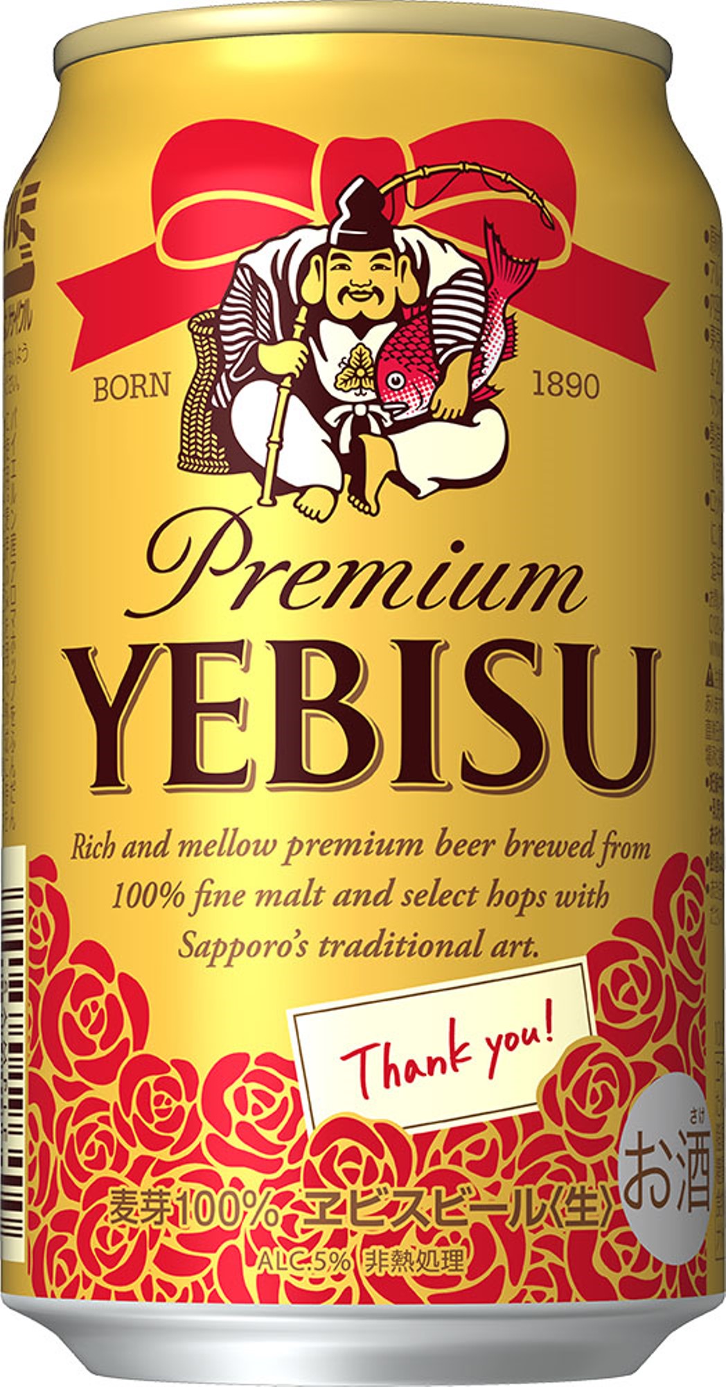 また、CM放映のタイミングで発売する「ヱビスビール デザイン缶」は、恵比寿様のロゴの上下に華やかな赤いリボンとバラの花をあしらい、感謝の気持ちを表現しました。父の日をはじめとした、贈り物にふさわしいデザインです。