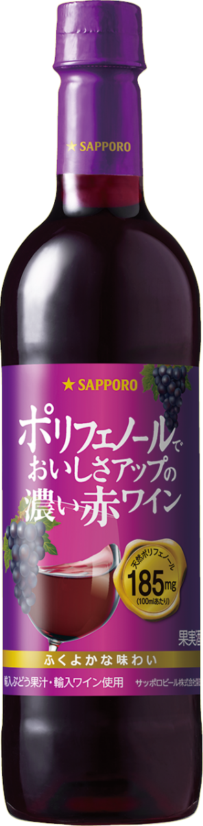 サッポロビール(株)は、昨年3月に発売し年間販売計画を上回るなど好調の「ポリフェノールでおいしさアップの濃い赤ワイン」から、手軽な飲みきりサイズの720mlペットボトルを新発売します。