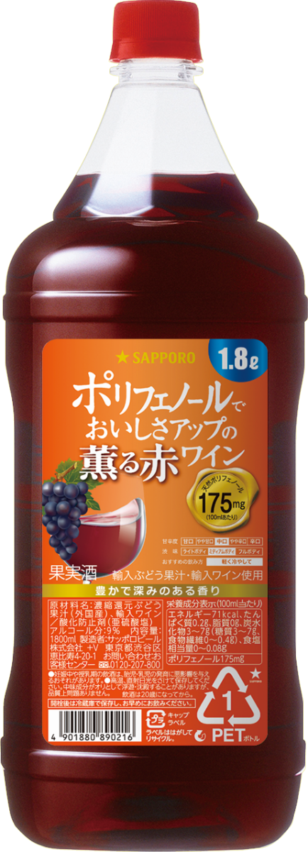 サッポロビール(株)は、「ポリフェノール/有機酸でおいしさアップのワイン」シリーズから、「ポリフェノールでおいしさアップの薫る赤ワイン」を、11月6日から全国で数量限定販売します。