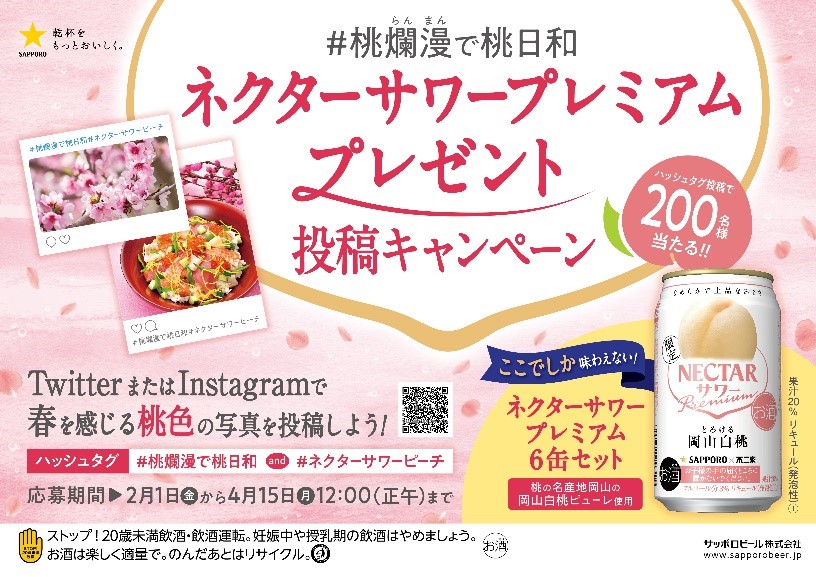 サッポロビール(株)は、『「ネクターサワープレミアム」プレゼント SNS投稿キャンペーン』を2019年2月1日より実施いたします。