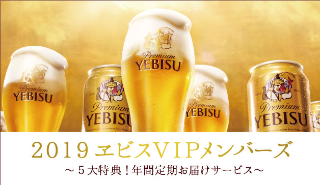 | 申込方法 | 2019 ヱビスVIPメンバーズ販売ページにて5月7日 午前10時より受付開始 https://www.sp-mall.jp/shop/a/aS2180507/ ※先着順、限定数に達し次第、受付を終了させていただきます。 ※お支払いはクレジットカード一括払いのみとさせていただきます。 ※お申込みにはサッポログループネットショップへの会員登録が必要になります。 |