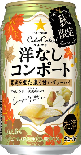 サッポロビール(株)は果実を煮た濃厚な甘さが特長の「CotoCoto」シリーズの秋季限定商品として「サッポロ CotoCoto洋なしコンポート」、「サッポロ CotoCotoブルーベリージャム」を8月20日より全国で数量限定販売します。