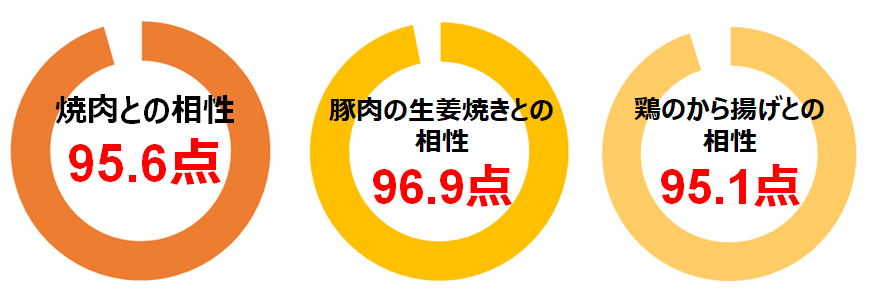 (注1)肉料理との相性味覚分析:AISSY株式会社調べ ※100点満点で採点