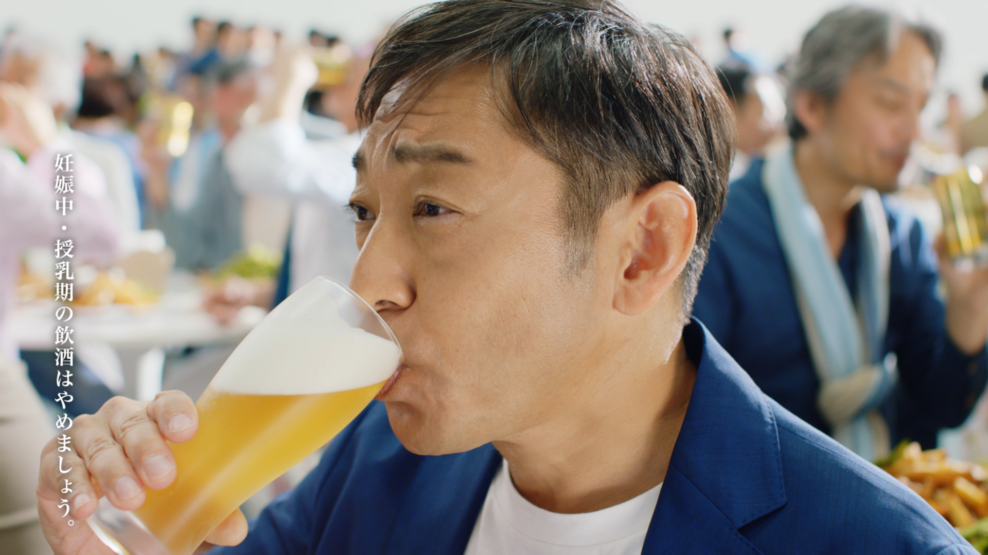 ビールが似合うタレント香川照之氏を新たに起用し、黄色のキーカラーを軸に店頭とコミュニケーションが連動した施策。