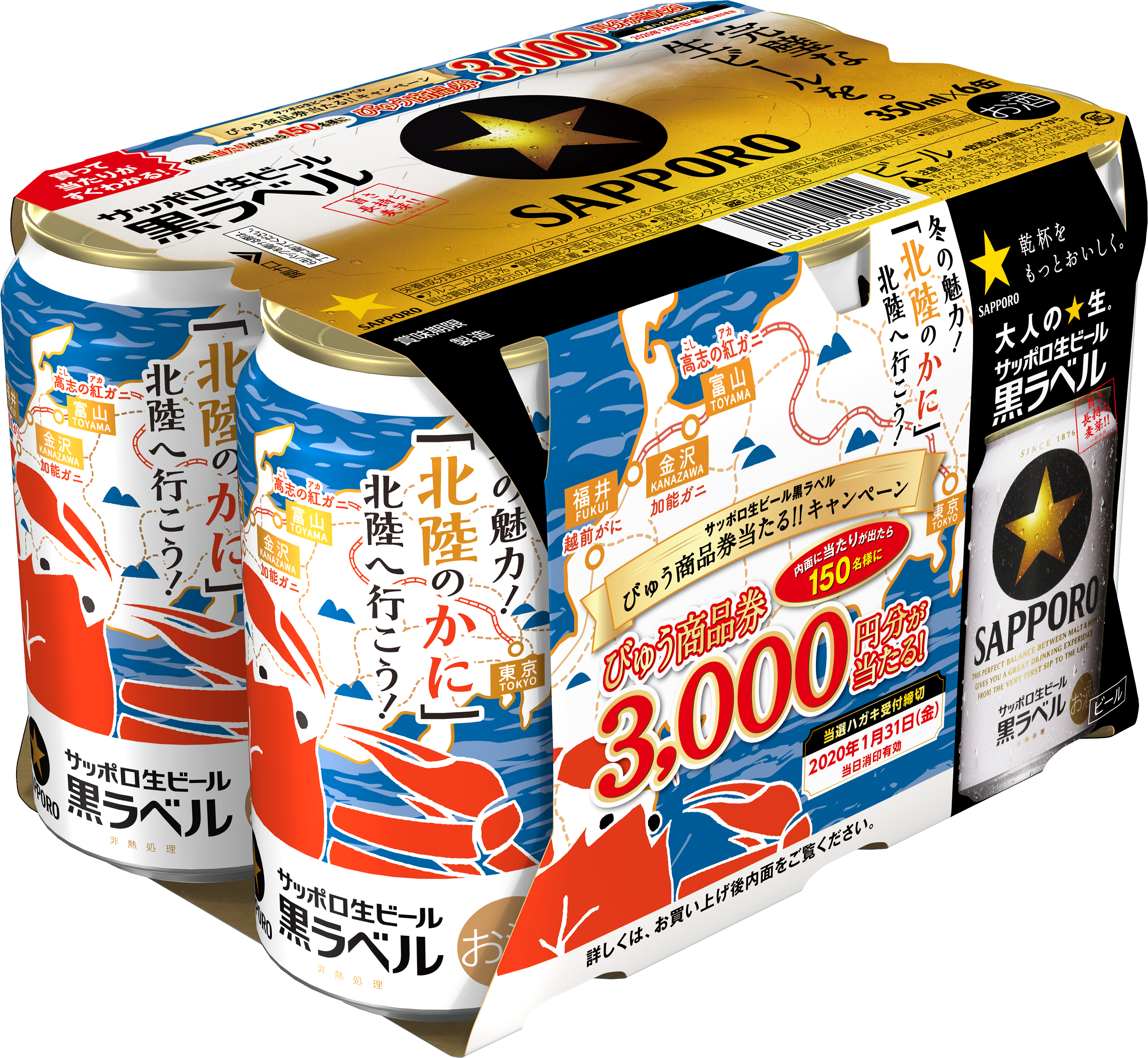 サッポロ生ビール黒ラベル<冬の魅力!「北陸のかに」北陸へ行こう!>デザイン缶を限定発売