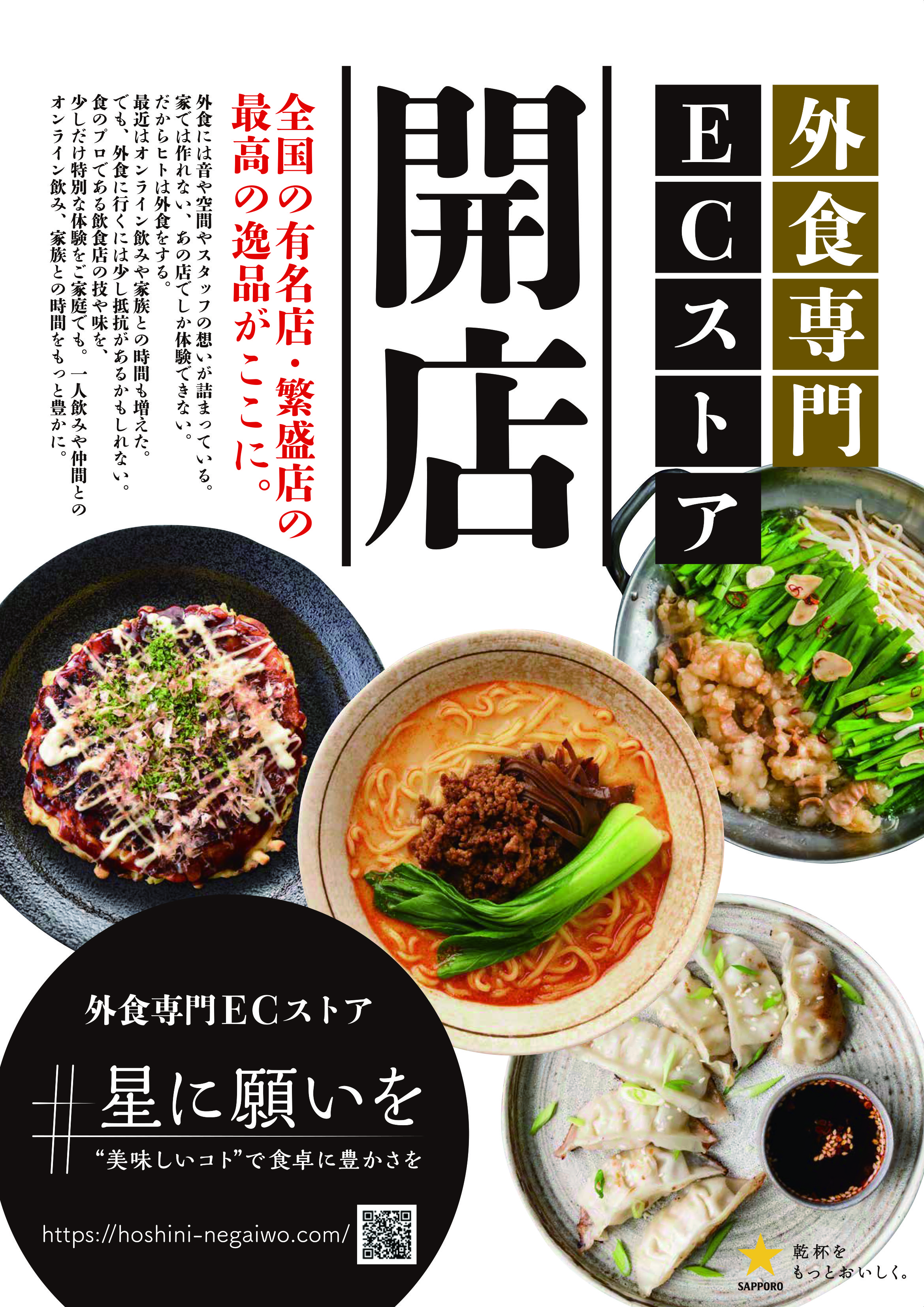 サッポロビール(株)は、外食企業のECビジネスを応援する外食専門ECストア「#星に願いを」をオープンしました。