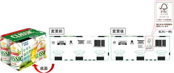 サッポロビール(株)は、国内製造のビールテイスト・RTD製品の6缶または4缶パックにおいて、国際的な森林管理認証である「FSC認証」の表示をした紙製包装資材を順次使用開始します。10月以降製造分の新商品、リニューアル品からの取り組みであり、その第一弾として10月13日(火)に北海道エリアで限定発売する「サッポロ クラシック 富良野VINTAGE 2020(注1)」から「FSC認証」を取得した紙製包装資材を使用します。