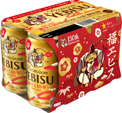 縁起の良いモチーフをデザインした華やかなパッケージのヱビス
