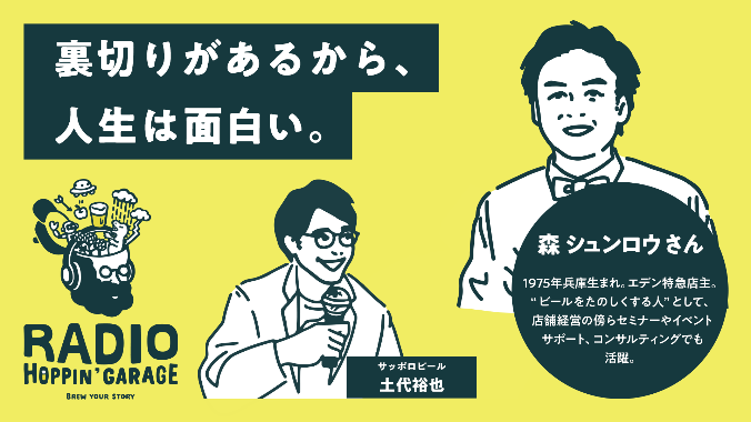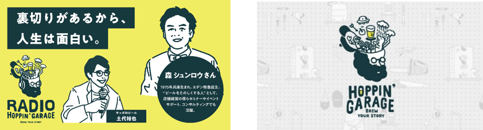 RADIO HOPPIN’ GARAGEは「Brew Your Story」をテーマに魅力あふれる人生を送るゲストをお迎えして、ゲストの人生のストーリーから、新しいビールを生み出しちゃうかも?な番組です。