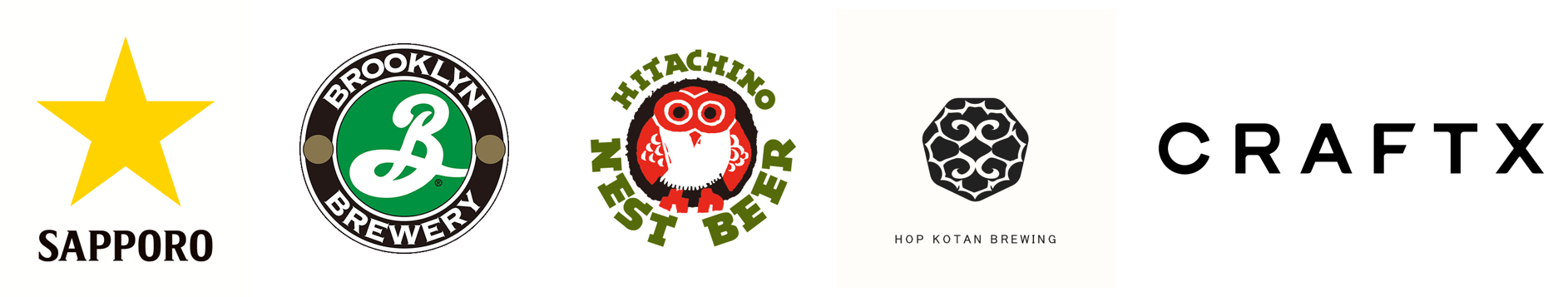 サッポロビール(株)、ブルックリンブルワリー・ジャパン(株)、木内酒造(資)、忽布古丹醸造(株)、CRAFTX