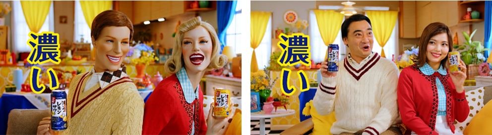 新CMでは「マネキン」のフーコン夫妻と「人間」のジャングルポケット斉藤夫妻が、全く同じシチュエーションとセリフで登場する2段構成で、リニューアルした「サッポロ 濃いめのレモンサワー」を紹介します。フーコン夫妻と斉藤夫妻、それぞれのバージョンを見比べながらお楽しみください。
