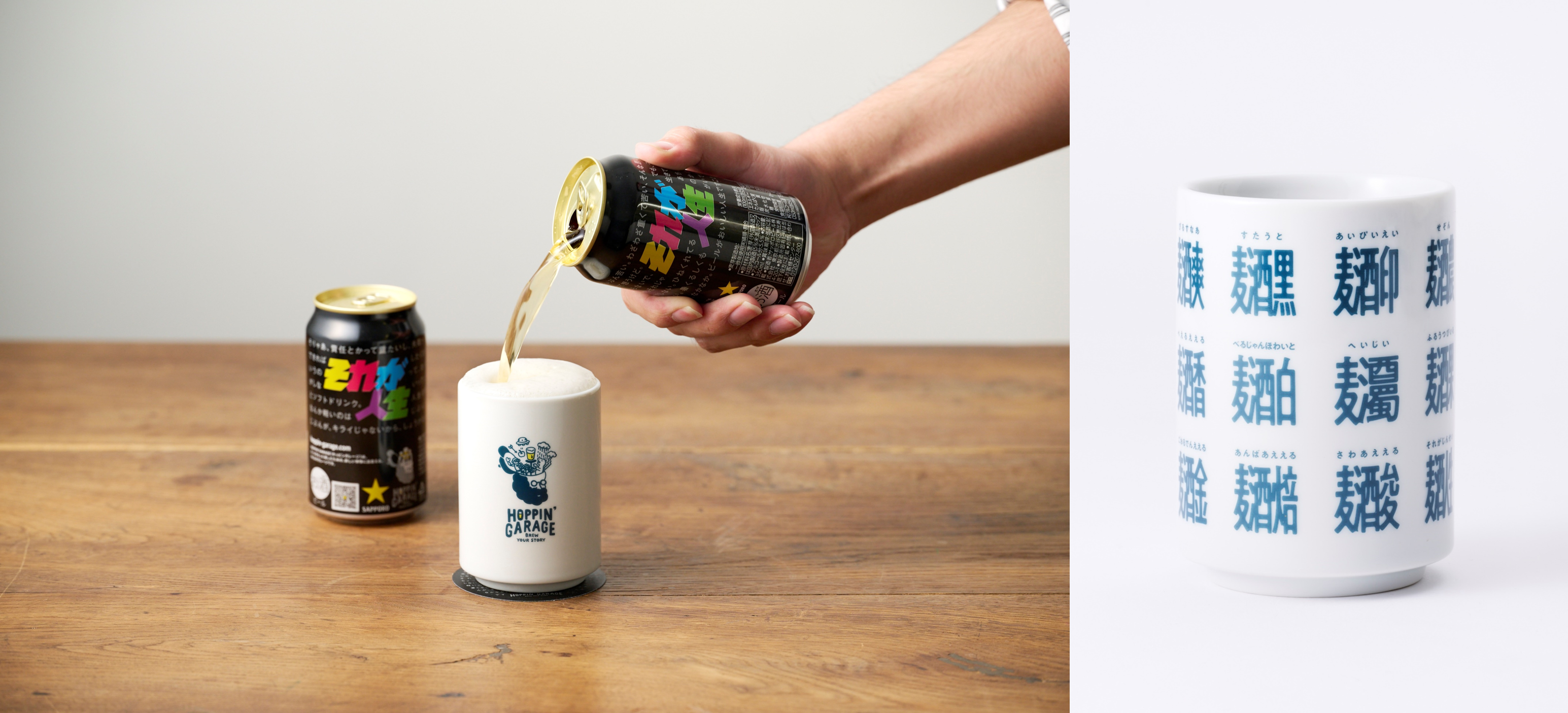 本商品のテーマである「言葉」をより楽しみながら、飲んでいただきたいという想いから、オリジナルデザイン湯吞「湯吞が人生」を制作しました。「魚」が使われる漢字を並べた湯呑にインスピレーションを受け、主人公の石井さんに「麦酒」を部首にすえた様々なビアスタイルのオリジナル漢字を表現いただき、湯呑にデザインしました。「それが人生」とオリジナルデザイン湯呑「湯呑が人生」の特別セット「湯吞が人生セット」として販売します。湯呑に注いで、「それが人生」をお楽しみください。