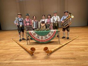主宰の竹田年志がドイツ留学中にミュンヘンを訪れ、アルプスの民族音楽に魅せられアルプス音楽団を結成。自分たちも楽しみながら、お客様にも喜んでいただく演奏を目指しています。トランペット、トロンボーン、チューバ、アコーディオン、ヴオーカル、クラリネット、ヨーデルの編成を基本にプロとして活動する演奏家。ウイーンにて日墺(日本オーストリア)文化交流演奏会に参加、オクトーバーフェスト、ビアガーデン、学校公演、そして月に一度、新橋「アルテリーベ東京」にてコンサート行っています。9月22日から10月1日まで、さいたまオクトーバーフェスト出演予定。