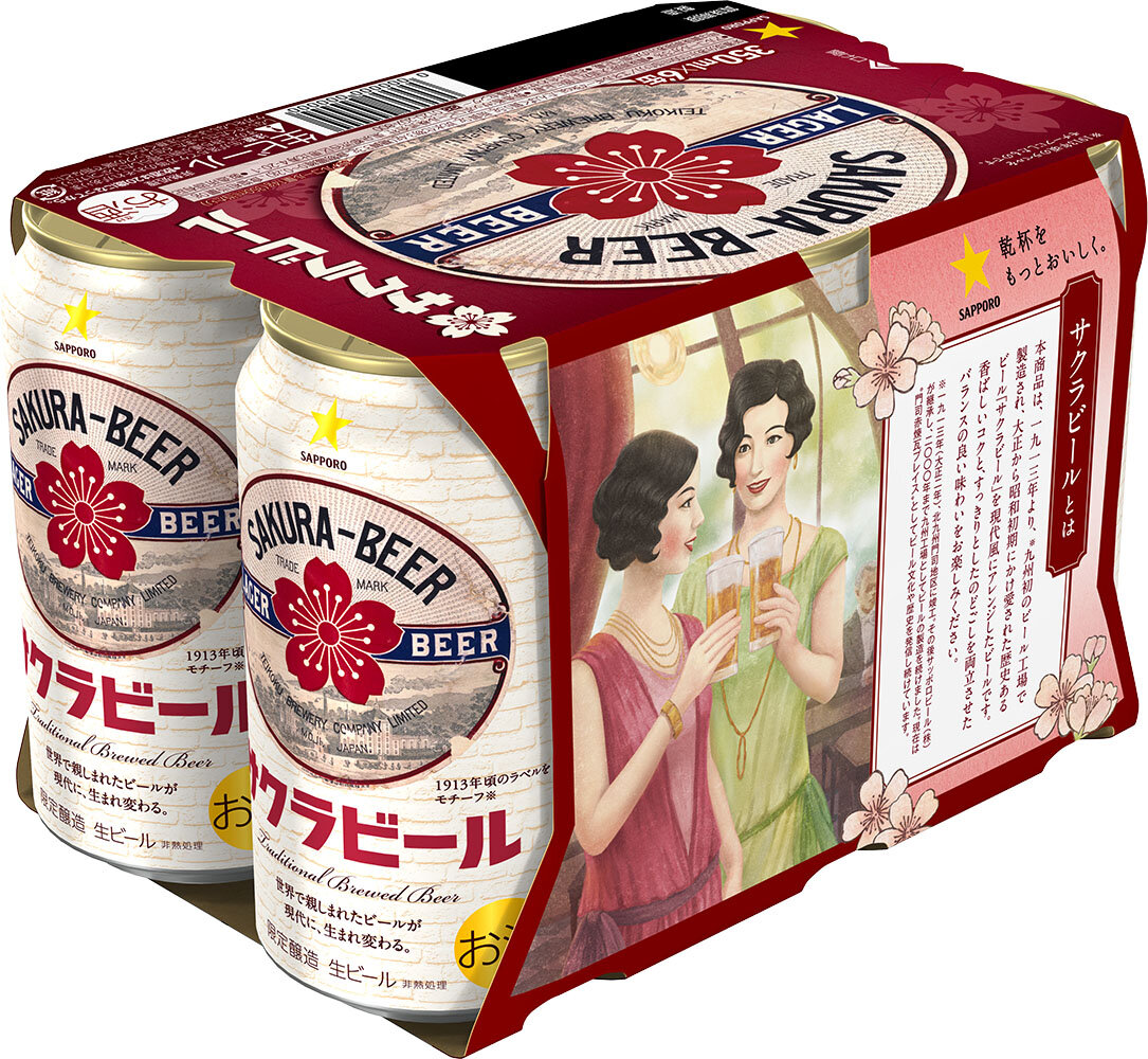 本商品は、1912年(明治45年)に九州で創業した帝国麦酒(株)が1913年(大正2年)に竣工した九州初のビール工場(注1)で製造を開始し、アジア各地にも輸出されて世界で親しまれた「サクラビール」を、当社醸造者が当時の文献を読み込んで現代のお客様の嗜好に合わせてアレンジしたビールです。パッケージには、発売当時のラベルと現代風アレンジであることが分かるように「世界で親しまれたビールが現代に、生まれ変わる。」という説明コピーをデザインしています。また6缶パックは情緒溢れるレトロ風ポスター(注2)をモチーフにしたデザインとなっています。