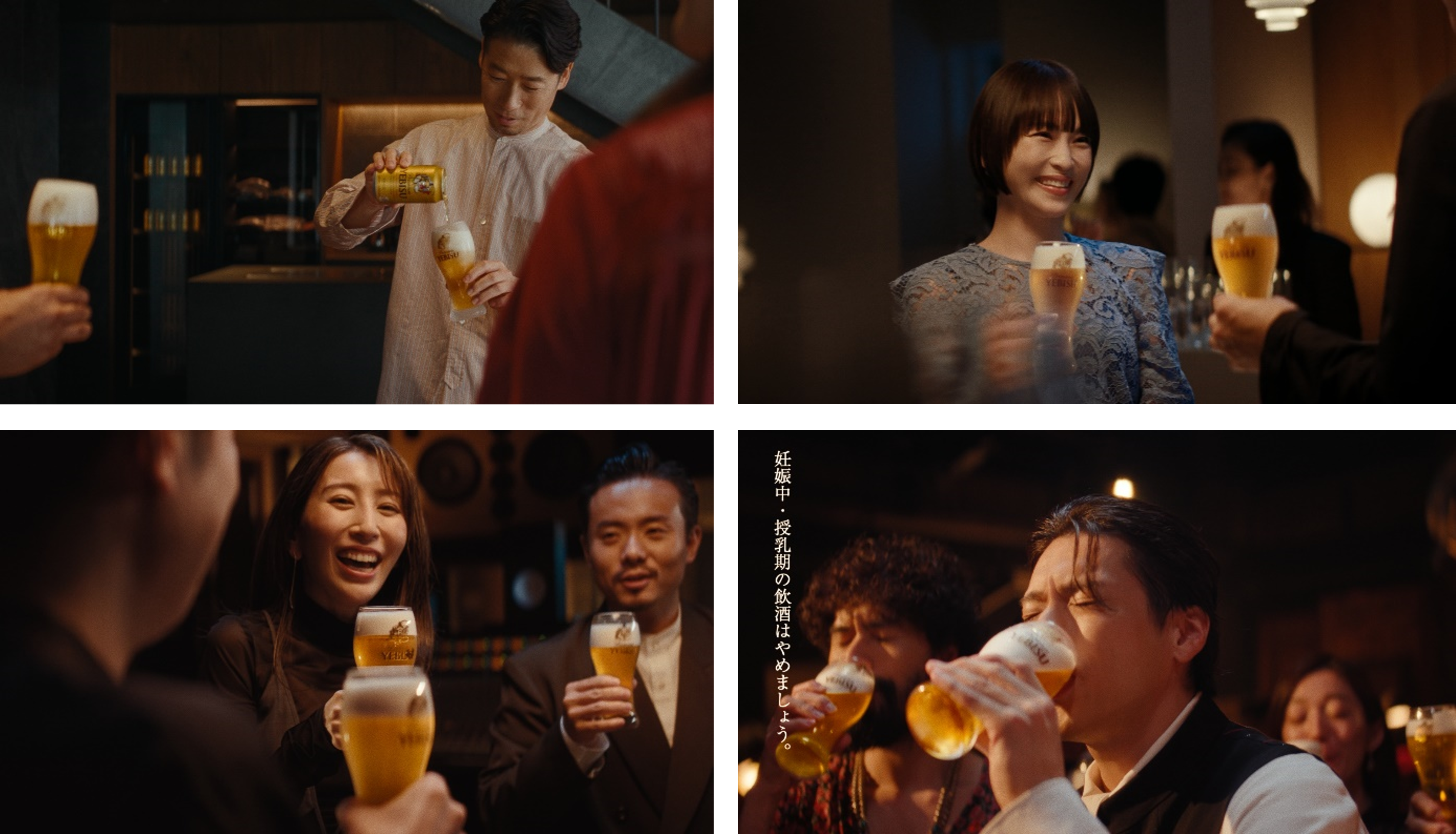「明日の世界を変えるのは、今日をたのしんでる人だ。」という山田さんのナレーションとともに、建築家の谷尻さんから始まり、アーティストの清川さん、バイオリニストの木嶋さんと、それぞれのジャンルで「世界を変えている人たち」が出演。真剣かつたのしみながら仕事に取り組む様子や、充足した晴れやかな表情で仲間と共にヱビスをたのしむ様子が、それぞれの「いい顔」として次々と切り替わっていきます。その後、山田さんが終演後の舞台上で観客席に向かい深くお辞儀をするシーンでは、顔を上げた山田さんの清々しい表情が印象的。続いて、山田さんが舞台裏で仲間と乾杯をするシーンでは、舞台上の引き締まった表情とは異なる、弾けた笑顔も見せています。