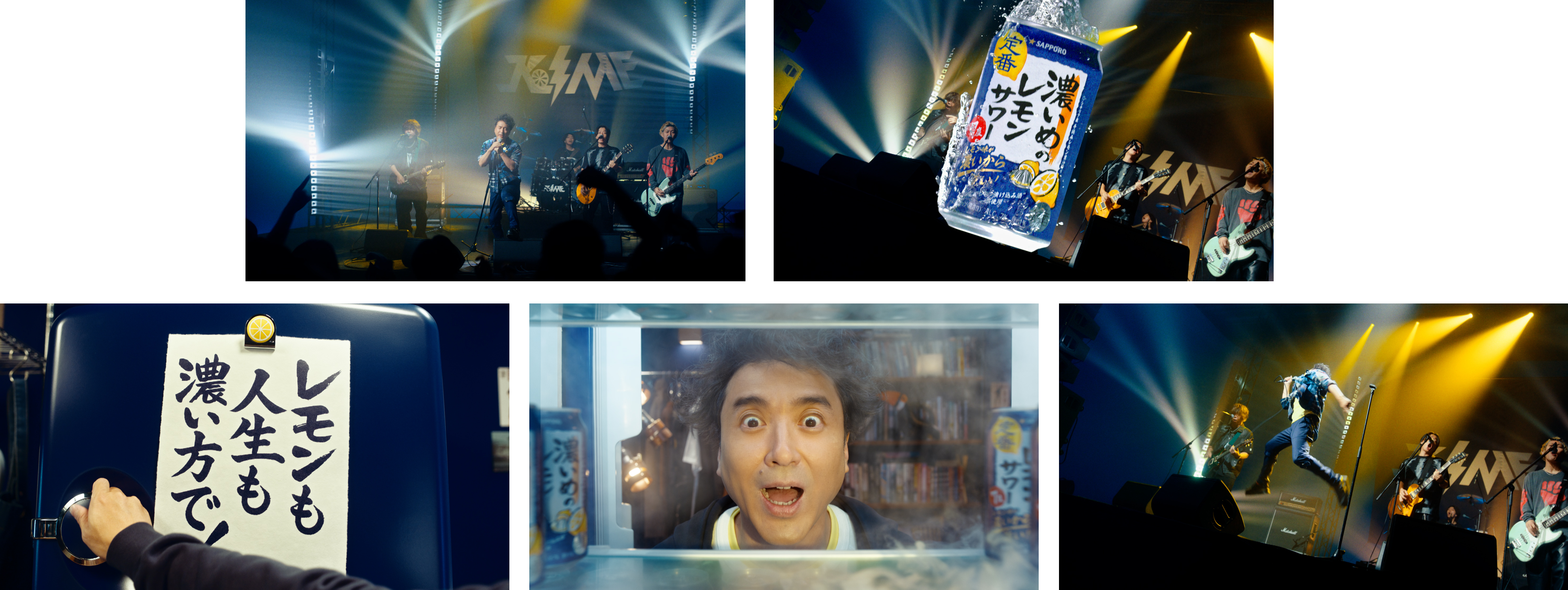 ムロツヨシさんが「レモンも人生も濃い方で!」という掛け声とともに冷蔵庫を開けると、その奥には盛り上がるライブ会場が。ムロツヨシさんがステージ上で「濃いめ!濃いめ!」のコール&レスポンスで観客を巻き込みながら熱気あふれるステージを展開。クライマックスでは「濃いめの人生、楽しんでるかーい!」と観客に呼びかけ、勢いよくジャンプし、「サッポロ 濃いめのレモンサワー」のレモンが“濃い”という商品の特長を大胆かつコミカルにおすすめする内容となっています。