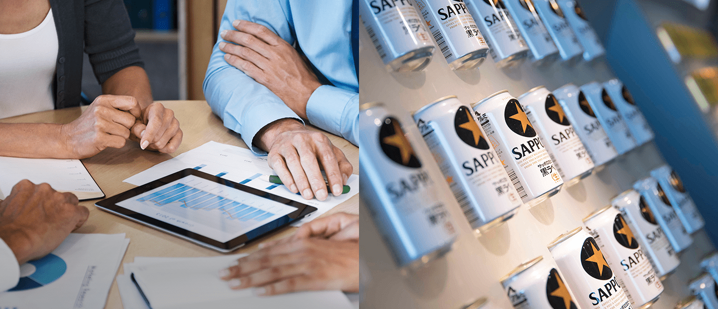 市場分析や店舗の実績データ等から商談資料やストーリーを作成し、サッポロビールの提案力を底上げする支援を行います。蓄積された知見を駆使しながら、営業の能力向上を促進し、組織力を高めていきます。
